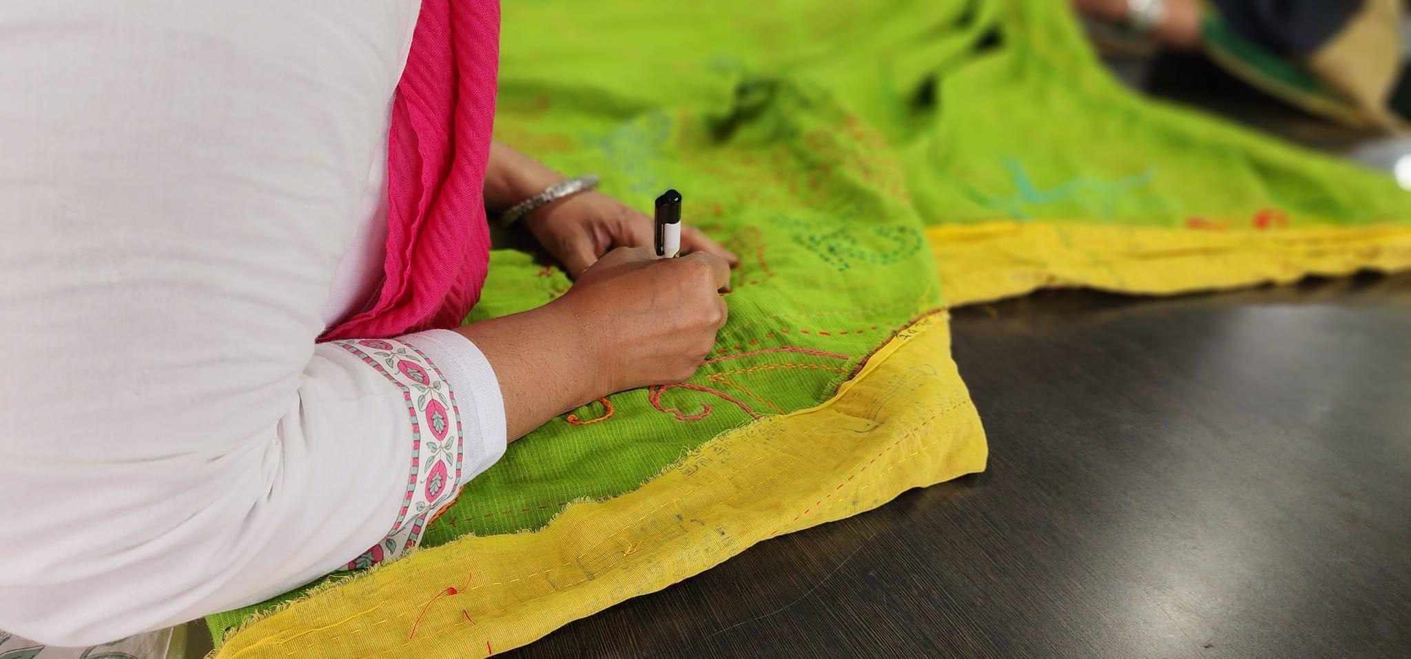 Making a Katha is a long, slow, laboursome process that often involves a group of women meeting regularly to create beautiful embroidery with repetitive running stitches.